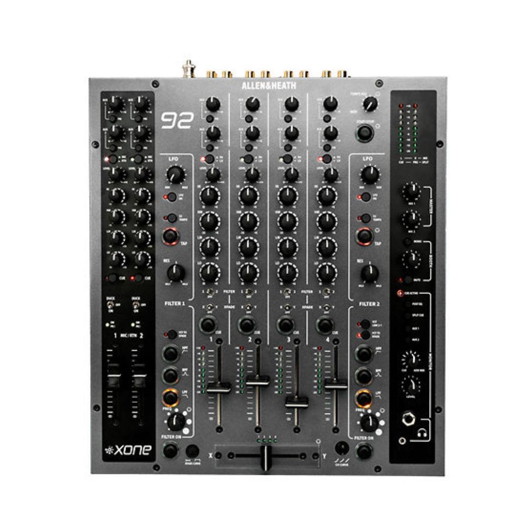 La Allen & Heath Xone 92 es una de las mesas de mezclas más icónicas y respetadas en el mundo del DJ profesional. Diseñada para un uso intensivo, ofrece 6 canales estéreo utilizables simultáneamente y una construcción extremadamente robusta, ideal para clubs y eventos de alto nivel. Cuenta con 4 entradas phono con preamplificadores rediseñados, múltiples entradas de línea, entradas de micrófono XLR con función Clean Feed, salidas Booth y Record, además de Aux Send y conectividad MIDI DIN. Su ecualización analógica de 4 bandas, junto con el legendario filtro VCF rediseñado (low-pass, high-pass, band-pass, notch y all-pass con Resonance), ofrece un control creativo total del sonido. Incorpora fader VCA, Talkover y crossfader InnoFader Pro mini con ajuste de curva y Crossfilter. Una referencia absoluta para DJs que buscan carácter, fiabilidad y control sonoro sin concesiones.