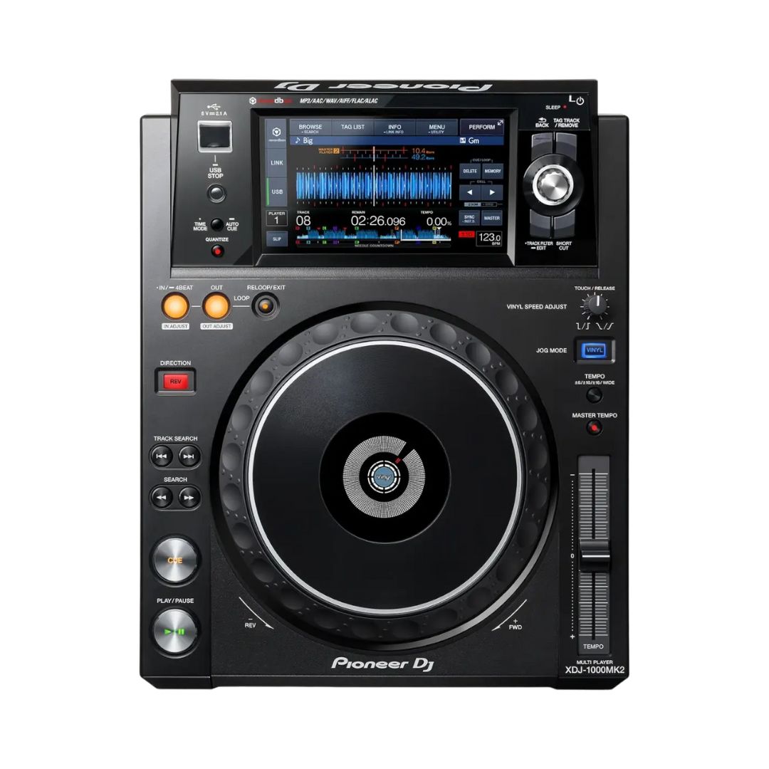 El Pioneer DJ XDJ-1000MK2 es un reproductor profesional que mejora la experiencia de su predecesor con una navegación más rápida e intuitiva y compatibilidad con archivos de audio de alta resolución FLAC y ALAC. Incorpora un jog wheel de gran tamaño y una pantalla táctil a color de 7 pulgadas, heredados del CDJ-2000NXS2, junto con funciones avanzadas como 8 Hot Cues y Quantize, que permiten un control preciso y creativo del set. Preparado para trabajar con rekordbox™, es una opción sólida y versátil para DJs que buscan prestaciones profesionales sin comprometer fiabilidad.